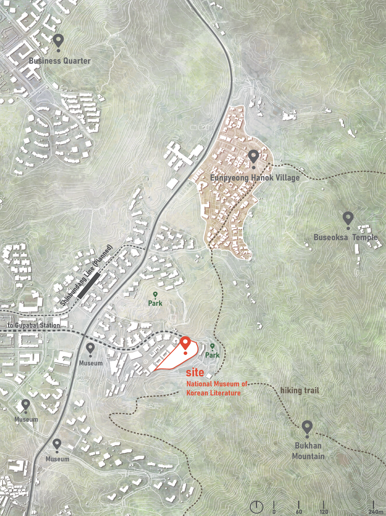 With three-quarters of its topography consisting of elevated terrain, mountains have always held a special meaning in Korean culture and literature. The design for the National Korean Literature Museum takes full advantage of its natural surroundings and the nation’s cultural heritage to create an experience of ascending a literary mountain in the shadows of Bukhansan.